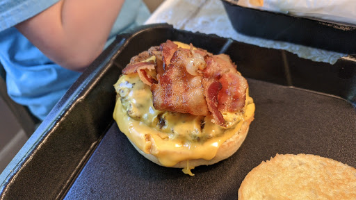 It was good food . But when I got my burger I barely had a top bun . I had a full sized bottom bun and the top was terribly small . I was very disappointed i would have enjoyed it better if I didnt have to eat it with my fingers and could have picked it up like a normal burger .. and it was quite loud and the dinning area was very messy . Dont get me wrong the food tasted good but you should start checking the size of the buns before sending them out. I was hungry after a long day at work and wanted a nice fat burger but I pretty much only had a bottom bun.