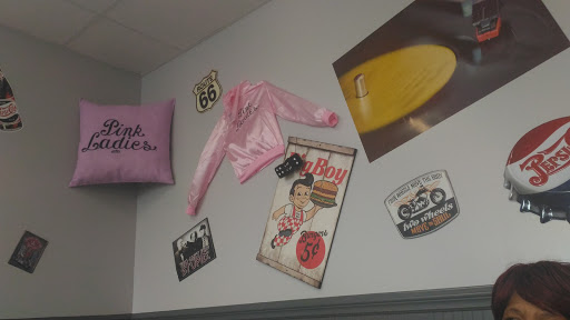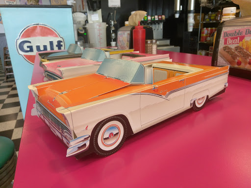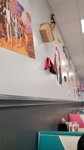 First time I have ever been to a "retro" diner ever. While the staff is super friendly, the decor is cute/retro, and the place is pretty clean I am giving it three stars because I felt it didnt quite meet my expectations. Instead of my food being served on actual plates it was served in baskets with paper. The chicken I ordered cost around $6 & some change but I thought it to be a bit small for that price. Our milkshakes were served in small clear plastic cups instead of glass. Also the shakes are vanilla based with whatever added. I myself prefer a true chocolate shake over a vanilla based.