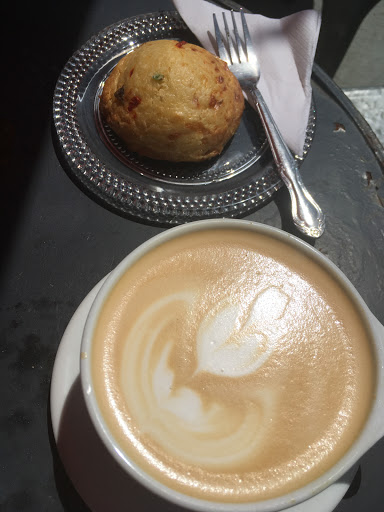 Small coffee shop that also sells jams. You can try several of the james and a couple salsas. Coffee shops in the back. Saw the bacon cheddar scone and had to try it. Totally worth it.