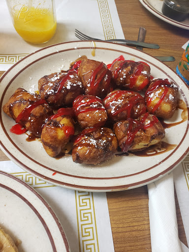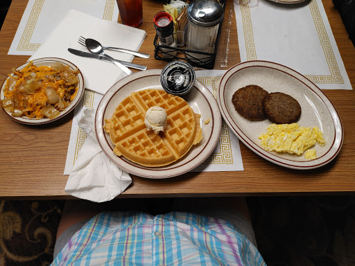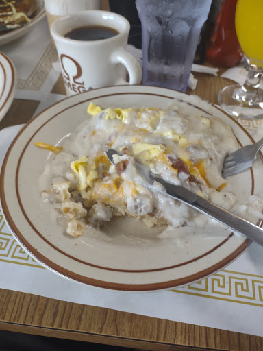We stopped here before getting on 544 to go home on a Wednesday morning. For starters, the restaurant was PACKED. I mean, we had people standing out in the parking lot and out the door. It was a early August morning, and it was raining kind of hard, and you had all these people standing out in the heat and rain. Anyway, the staff was obviously used to the crowds but just couldnt seem to keep up. We waited 15+ minutes, which wasnt really bad for what the restaurant looked like. The staff was running around like maniacs, once again, understandable. We get our food, and its pretty good. We got here around 9:50, but didnt get to leave until around 11:30 because of how long the food took. I had chicken tenders, fries, and waffles. Me and my mom also split a pancake. My food was just ok, my parents food was pretty good. Just dont go on a very busy day, its too chaotic. When we left, the wait was up to 1hr30min+. Pros: Pretty good food, close to 544, beautiful and elegant dining room, kind of fancy but plain at the same time, kind servers. Cons: Crowds, chaotic, waits, long time for food . EDIT: Hi!, so we stopped here again this year during our stay on Monday afternoon, and the food was delicious. My dad had pancakes and mom had an omelette, and I had chicken tenders and fries again, lol. All in all, it was delicious! Great service and awesome food, although they had to cut the power because they were having issues, lol again. We will come back soon! Thanks Omega!