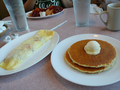 Service was extremely slow. We had a baby and needed a high chair. They put us right in the middle of the main walkway, which was an inconvenience for everyone. Got to hear the staff chew out the hostess for seating people in the wrong seats. Took 30 minutes to get our food and it wasnt great. Pancakes were just ok. I got the baconator omelette and I think the feta cheese had gone bad. Had to ask for water refills. The bathrooms also didnt have changing stations. I realize not everyone needs this but you do if you have a baby and especially if you stop for breakfast before you leave town. Had to change my one year old child in the front seat of my car. We will never go back