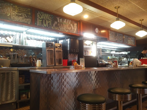 Nice ambience, mixed retro/techno diner feel. Wait staff has been hit or miss over the dozens of times Ive been there but generally good to great service. I recommend the fried pickles if youre needing more time to decide what to order for the main course. Classic: liver and onions but alway ask to hear about the daily specials! Great location if you want to do some window shopping downtown. Be prepared for a 20 minute wait if you come for dinner or lunch; breakfast not a problem.