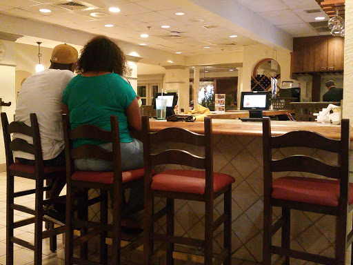 Disappointing as soon as you walk in the door. The atmosphere smells old and unclean. Hostess was very unwelcoming and unprofessional. My fiancé and I were seated before three other families even though there were empty tables everywhere. Dirty wine glasses with food stuck to them! We were also informed by our waitress that the bartender was very slow so we would have to wait a long time for our drinks? Had to ask for water and the waitress had to come ask for our food orders twice because she didnt write them down. Food was mediocre. We will not be back.