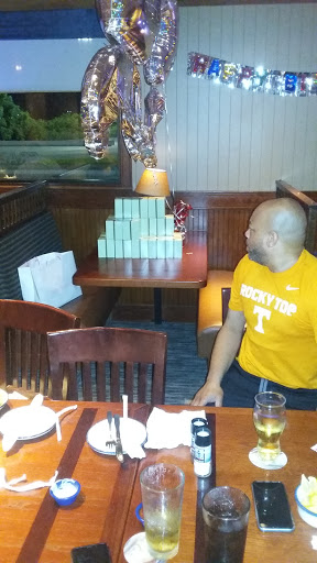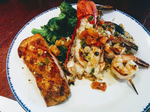 Only deduction because their booth seating is a little too tight for food lovers like me, my potato was a little small, and my admirals feast now uses "bay" scallops instead of "sea" scallops. Overall food is still delicious and service superb. Hostess was very accommodating about the booth issue and server Brittany C. was delightful. She even took time to take pictures for another couple at their table with their phone. If you can, request her section. She was awesome. Manager seemed nice when I stopped to compliment Brittany on my way out.