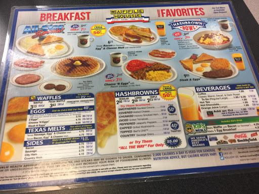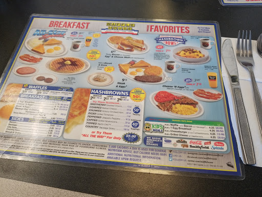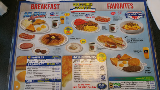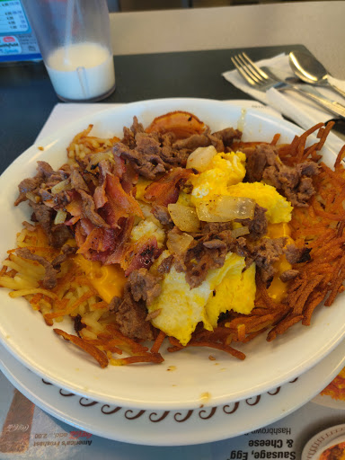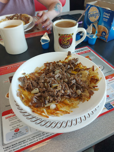 Great quality customer service. I always tip high here because the waitresses are nice. Food meets waffle house standards. Love waffle house coffee. Great stop for some breakfast food. Open 24 hours.