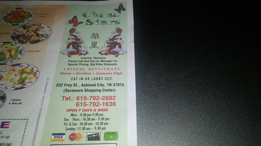 New China Star is a great restaurant in Ashland city. They have excellent food and service. The General Tsos chicken is one of my favorite meals.