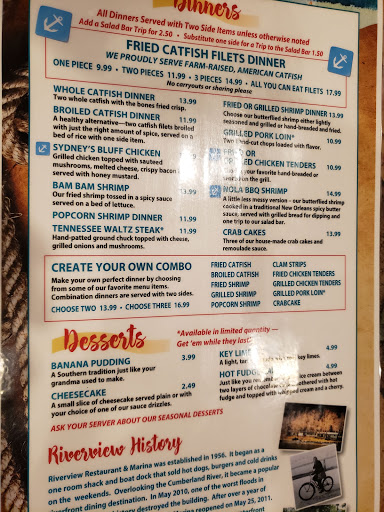 We have went to Riverview Restaurant & Marina several times and Before the flood have had several Meals at the Marina. We really like the Catfish Dinners..