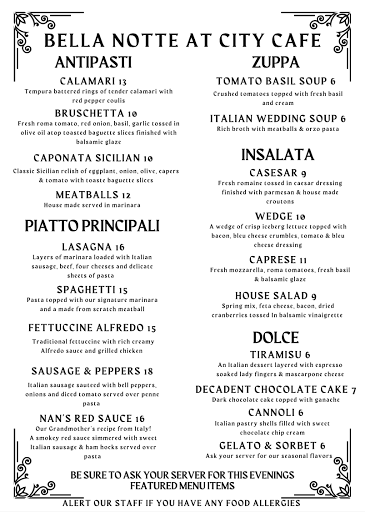 I LOVE City Cafe. A good ole southern meat-n-three in all aspects. Delicious made from scratch southern food and sweet tea with a different menu each day. And the service is second to none. Oh, and you have to try one of the pies while youre there. Oh my the pies!!! UPDATE: City Cafe is now open for breakfast and it is just as good as youd expect from them. In a word, delicious!!!