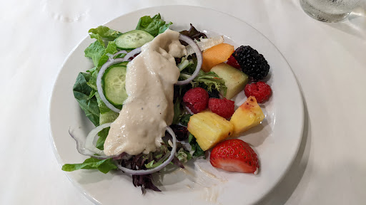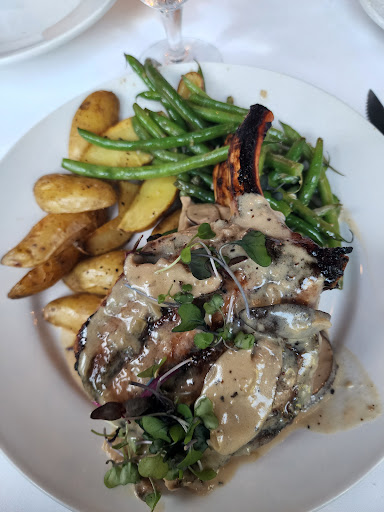 My wife and I ate here during our stay in Brentwood. The food is really un inspired and a throw back to the 1980"s. Stuffed mushrooms with crab and lobster swimming in cream and butter. Scallop entree had some promise until the chef/cook seasoned it with some type of powdered seasoning which made the scallops too salty and took away from the flavor of the scallops which were a good size and cooked fine but again old school cooking with no imagination. The service was good and the staff was friendly but if you are looking for really good food this is not the place.