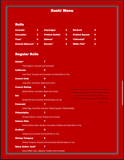 Visit here often and always feel welcomed. Great selection of rolls. If sushi isnt your thing, there is plenty of other items to choose from on the menu. Wifes favorite rolls are the Super Crunch and Mimi Rolls. My favoriteson are Samurai and Sunny Rolls. Also like the fact they have plain fried rice available as a side. Lastly, I highly recommend the salad...the dressing is almost good enough to drink.
