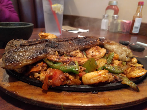 Excellent food ( "Fajitas Jalisco" - Shrimp, Steak & Chicken, with.onions, tomatoes, and bell peppers - sizzling hot, with sides of refried beans, rice,.guacamole salad, sour cream, & Pico de gallo, with hot rolled up flour tortillas!) Yummy!!! Prices are.very reasonable too!!!