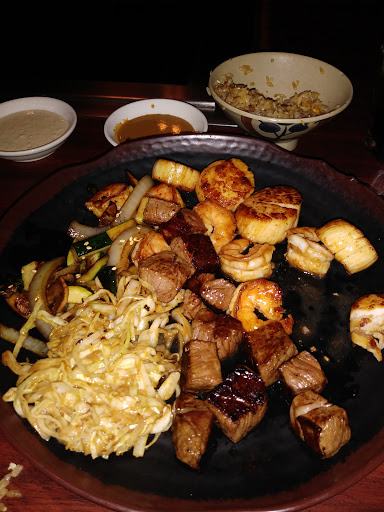 We love dining out where the food is cooked in front of us. However this time our dining experience was very bad. Service was good, manager was the worst and charges were very poor. Paid for a 21 dollar meal but got way less then 21 dollars worth. Also bought a childs meal which was lacking on the food portions too. When it was brought to the atten of the manager she did nothing to fix the problem or even discount the meal. To top it off I was also charged a gratuity fee of 13 dollars. When we only had a party of 3! Heads up to anyone that works hard for their money, dont go to this place. They look for any and every reason to rip you off.