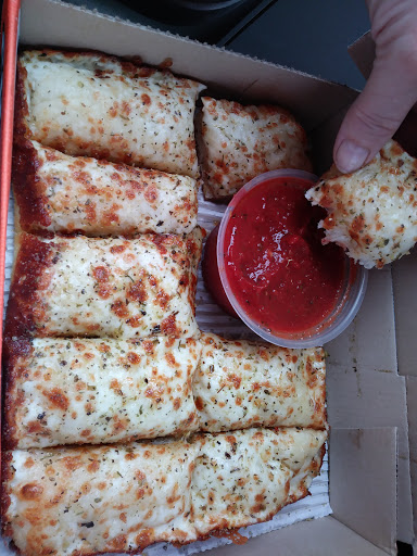 Unfortunately my review is not as pleasant yes it is a quick serve but the bread sticks are really dry and not well seasoned and if you ask them to add seasoning they charge you a dollar just to put more seasoning on. That breaks down to almost .20 per stick. Papa Johns will add extra seasoning on their garlic sticks for free. Little Caesars is making major cash with the 5 dollar pizza pick up but charge a 5th of the price of a whole pizza for extra seasoning. This is where greed really comes into light of corporate businesses. The sauce is a little more spicy than it needs to be. Employees are really impersonal also. They are not well versed on their services and really short. I hope they can get on a better track to make it easier to hand my money over to their company.