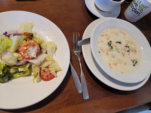 Our salad came to our table and waitress tray was so dirty and nasty. My wife asked for a glass of wine but waitress forgot about it. We started to eat our salad but noticed salad leaves were muddy. We talked to the manager and her excuse was worse than her muddy salad! She said, they buy the salad leaves as a bulk and use it without washing them! She offered us more salad but we said `no thanks` to more muddy salad! She didnt offer us discount or gift card or nothing. So we asked soup instead of salad. My wife also asked for her wine for the second time. Waitress brought us 2 cups of soup but the soup was spilled all over on the bottom plates and spoons! Even spoon handles were covered with soup! There is no word to explain how nasty looking this was! So we didnt touch to soups either and kept waiting for the glass of a wine with no luck. So we basicly got charged for the food but didnt eat almost anything and still got charged for all. The restaurant was not busy at all but we couldnt believe she forgot our a glass of wine even we asked for it TWO TIMES. Very nasty restaurant, nasty manager and nast food.