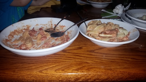 This was my first time to Olive Garden since I arrive from overseas tour. I though I would be impressd by the way my wife describe how it was in our hometown location in California. First off, I didnt mind the wait due to amount people that was there but when I return at the given time they couldnt find my name, plus they gave me a buzzer that didnt ring hince my return, the host said they buzzed the wrong number they said and apologized. Secondly, location they sat us at was way in the way back, when clearly their were open spots in the front which I didnt mind either because I have two children. Third, when we ordered our food it arrived the same time as the same time the guest that orderd their food, mind you they can about roughly 15min after us. On the plus side our fried zuccines were freshly hot but also had a stran of hair in it and our calimari was soggie and warm, I brushed it off again because were starving. Forth, when our food arrived it seem to warm and has been sitting for a bit. Fifth, after this whole ordeal seams that a good amount people got paper to go bags with olive gardens trademarks, ours did not. Lastly, this is the morning after our experience I decide to eat the left overs, and my sons fettuccini alfrado had a long light brown/blondish hair. Best believe we are never going back.... I do not recommend this location.