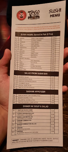 Our group of four ate in the dining room. We all enjoyed the food very much. The service was friendly and attentive. Since none of us was familiar with this cuisine, when we asked about how to eat it and about what everything was, they patiently explained it to us. They also showed us how to use chop sticks, although most of us opted for forks. Because of our interest in, what for us was a new cuisine, we were also given a sample of sushi. When we return to Cleveland, we will definitely return to Tako Yaki.