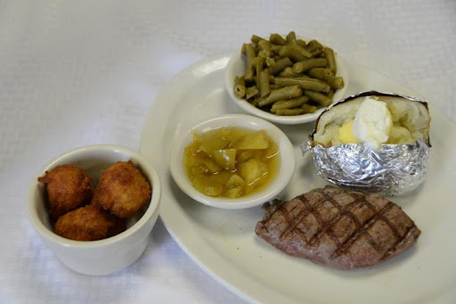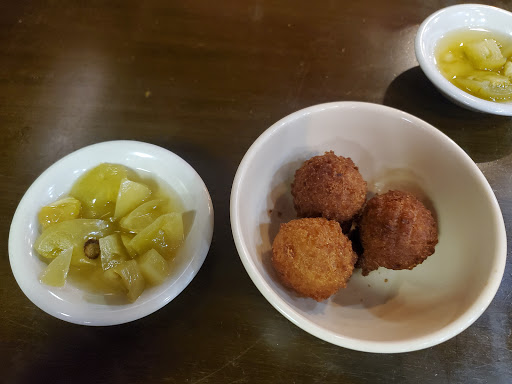 Nice local restaurant with traditional Southern fried catfish and grilled options too. Pickled tomatoes, hush puppies and good traditional Southern sides.