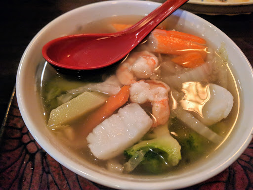 We go here for lunch every time we are in Columbia. I love their hibachi meals off of the lunch menu. They are reasonable and delicious. Have a serving of their gyoza as an appetizer, its so good. The ginger dressing on the salad is to die for and the lettuce has always been cold and crisp. Ive never thought the clear soup in Asian restaurants was very tasty and this is about the same but I dont go there for the soup.