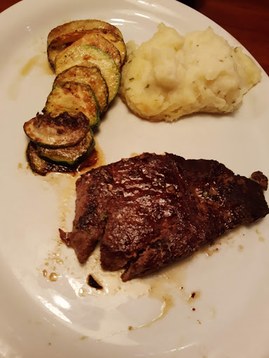 Quick service. Pleasant server. But, specifically asked green beans to be cooked soft, came to me hard. Pork chop thick but I scraped off excessive seasoning and charred outside. Husband steak was good. Didnt think they should have sat a family with a 3 year old in the bar area next to us when at 5 there was plenty of space elsewhere.