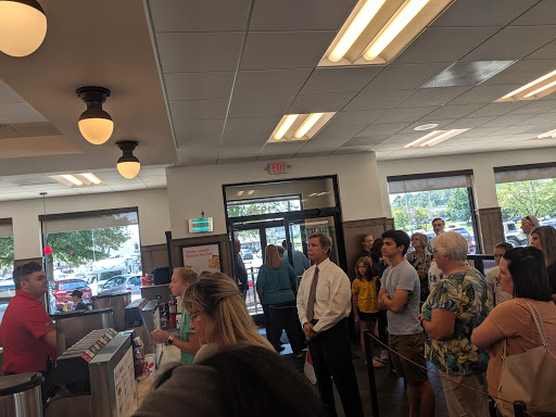 We went on Friday at 530...place was super busy but the staff handled it very well and kept everything running smooth.... Food and service was great as always.... I have NEVER had a bad experience or had to wait long at all every time I have been here.... The employees are all very friendly and courteous.... One of the best CFAs I have ever had the pleasure to frequent.... Would highly recommend.....