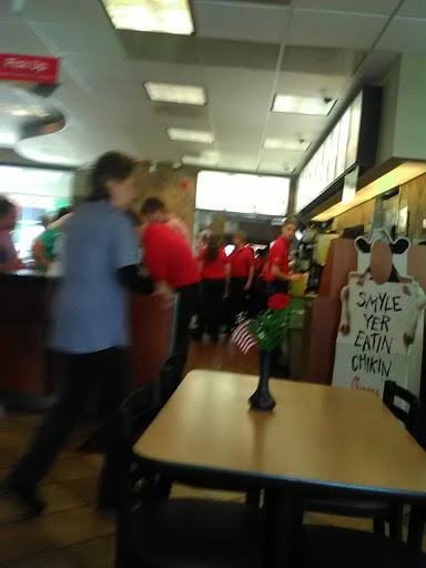 Just travelled through and they were out of medium cups and asked if we wanted a small or large. I thought, why are they even asking they should just give the large because they are out of mediums. I used to work at a Chick-fil-A and this happened before and thats exactly what we did. We have the medium cups for the medium price because it was our fault. Just a little surprised that this Chick-fil-A handled it this way. So thats why only 4 stars instead of 5 Food was good though.
