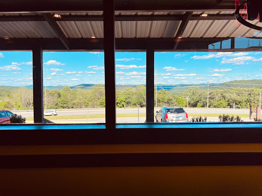 Great food and very good service combine with a great view of the countryside from atop the hill.