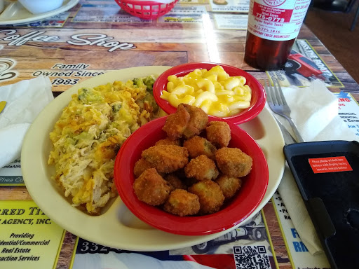 Its about normal. Just as its called, Coffee Shop. I will say Im not crazy about the breading for the chicken. Has a sweet taste, not good on chicken livers though. We usually have to send something back for either being to cold ( mashed potatoes) or something dried out. But they are more than happy to exchange or heat you up if ya need it. Cant I really complain because the price is always right. Buts an old restaurant, has all the small town charm youd like. People are friendly, it is clean, and the pies are a dream! The cucumber salad is awesome but my pic of all is the cubed steak with gravy and a side of Cole slaw. And if youre lucky youll get there early enough to get the best tasting jalapeno cornbread you ever tasted! Try it out, you wont go home hungry or disappointed!!