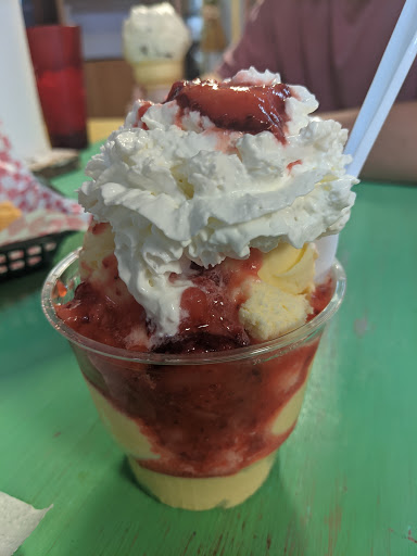 They have a nice selection of ice cream and sundaes but there is no place to sit down and enjoy your treat. I had to go outside to eat and my sundae melted quickly in the heat.