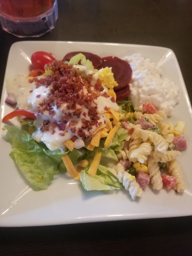 First, my wife and I waited for about 10 minutes to be seated in a restaurant that was almost empty. I will say that the salad bar was fine, but the burger was massively undercooked and my wifes soup was a chunky mess. What we could eat tasted like the cook had just dumped a ton of salt on it. No comment was made about our virtually untouched plates. When we left there was no thank you. Maybe it was just an off night but we will not be returning.