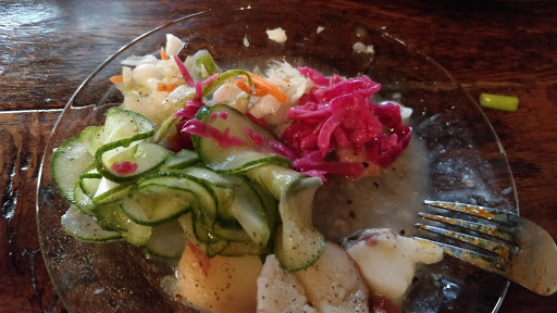 Found this restaurant on Local Flavor, bought a voucher to try out. The day we went happened to be the Oktoberfest day so they wouldnt honor the voucher. The food wasnt that great but it was very pricy. We had Kassler Rippchen (smoked pork chop) and Jager Schnitzel. Ive never had sweet mushroom sauce on schnitzel. It was so sweet, I couldnt finish the plate. Cheese spatzel was nothing special. Cheese wasnt even mixed in. I lived in Germany and had german food in US plenty time but never had this kind. Since there are different style, I wont say this is not the german food but its not my favorite. By the way, I understand that they want to save time and money on washing cups but please, serving Oktofest beer in disposal plastic cup, really? If you gonna do the fest, do it right in Stein!