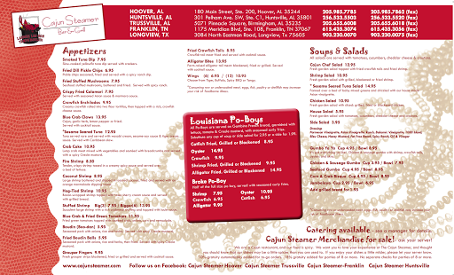 Me and my son recently ate dinner here on vacation. We sat outside and listened to a guy playing guitar and singing on a perfect Tennessee evening. Food was awesome, staff was awesome, the Cajun Steamer will be on our list of places to go everytime we are nearby!