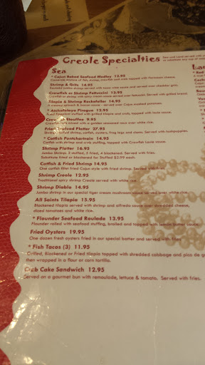 Sat out on the patio, flies were relentless. Water glasses has a slight fish aftertaste. Fried pickles were nice for an app. Had the catfish portatrain for my main dish and it was NOT good...I seriously am not the person to send food back, but this dish did not taste right at all. Spoke to the manager, she corrected the issue and I ordered a talapia dish, which was much better. I would only go back to this place to try the huge seafood platter they have, a boil of red shrimp, lobster, crab legs etc.