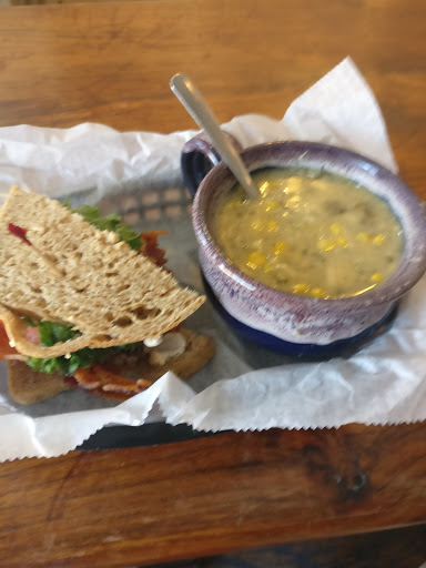 Just finished eating. Tomato basil soup was awesome, great sandwich & potato salad, divine homemade desserts!