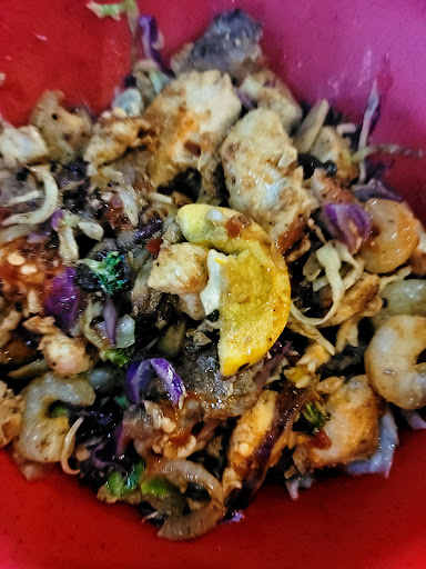 the reason im giving it 5 stars is because i selected all the ingredients and portions myself and im the best decider for me. that said, the meats, seafood, veggies, condiments and rice are all super fresh and cut and prepared for hot singe style cooking. if youre reading this review, than you are giving it some serious forethought. do yourself a favor and go to their website and research their menu for ingredients so you wont be a lost soul when selecting the right stuff for yourself. do that, and youll give the place 5 stars just as my wife and i are doing. YUMMY!