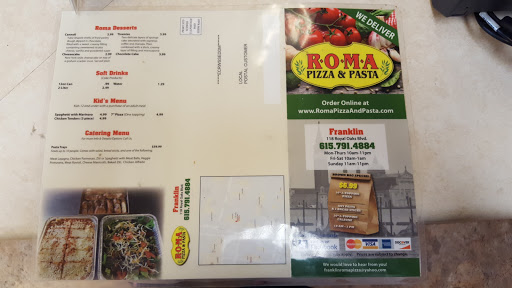 Were from Colorado Springs, and were staying at the Best Western in Franklin, TN. I got a calzone from Roma Pizza on Sunday, and it was fantastic! It comes with the top crust slit open, which both lets it cook fully and quickly, and makes it much easier to eat. It was so good, that my wife and I ordered a pizza the next night, and it too was great. I would highly recommend Roma Pizza to anyone in the area. Well probably need to be back in Franklin later this year or next, and well be sure to visit there again.