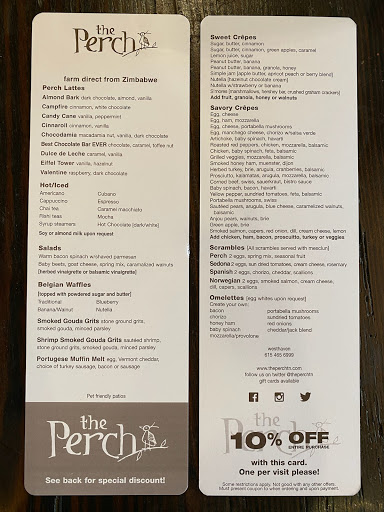 We just moved here and are so grateful that we found The Perch. The omelettes are amazing and the entire meal can be really healthy if thats what you want. There are also a lot of other fun things that arent so healthy but sure are yummy. I highly recommend this restaurant.