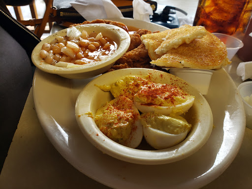 Fun, local joint that serves great food - BBQ is awesome as well as the catfish. Havent tried a burger here, but some of my friends have and say they are great as well. Portions are plentiful and there is a good selection of sides to choose from. The staff is all super friendly & make sure you are taken care of. This is a really popular place, so go early and be prepared for a wait at times - totally worth it. Cash or check only.