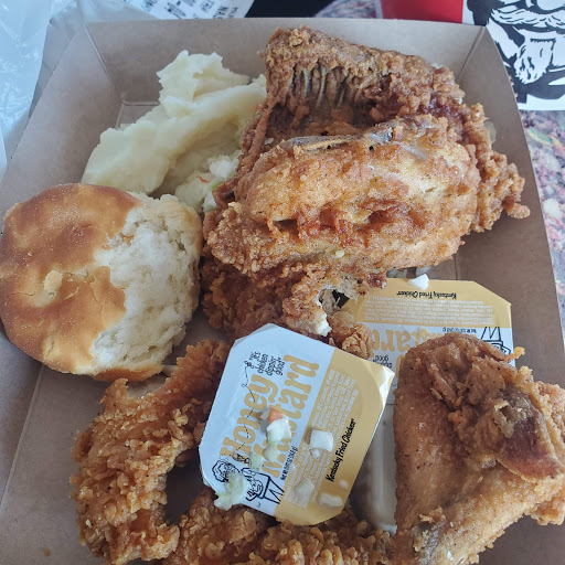 My first time at KFC. I had the popcorn nugget meal, and it was great. The only complaint I have is that the Popcorn Chicken meal only comes with one side and no biscuit, unlike most other meals there, which have two sides and a biscuit. Reminiscent of typical fast food you may find at Popeyes or Chick-Fil-A.