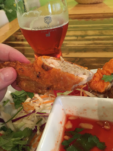 This place is easy to miss. You want to turn by the auto art collison sign. The service is great but you need to be prepared to wait for your food. This is because things are freshly prepared and worth the wait. Order your food first then take time to pick your beer or cider from the crazy extensive menu. We had the crab rangoon, dumplings, fried rice, satay, pho and larb gai. All great.