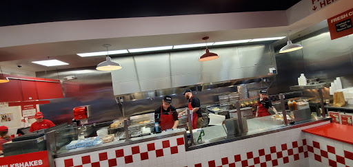 Food is good as usual. The workers seemed confused and not enough there to work the crowd. Longest wait ever in any Five Guys Restaurant and it wasnt lunch or dinner time. The most disturbing is the cashier spilled a milkshake took his gloves off cleaned it up on the floor with hand paper towels, then picked up the cup without washing his hands then put the lid on the shake. After that still didnt wash his hands..rang up 5 more people made 2 more shakes still did not wash his hands. Ive sat here for another 10 mins...no washing hands. Wow....