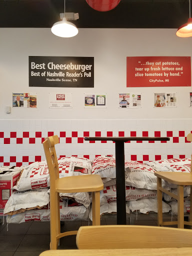Ive eaten at other Five Guys before, so I was very excited to see one open in Hendersonville. Maybe my expectations were a bit high, but I left slightly disappointed. If youre not familiar with Five Guys, the portions are rather large. 2 can easily get a small burger each and share 1 order of fries, and leave miserably full. No problem there. They also have the Coke freestyle machines, so its always fun to watch people try to figure those out :) The burgers were good as always, but the fries were a huge letdown. For a place with "fries" in the name, you expect good fries, you know? We decided to try the Cajun fries for the first time. They were very soggy, and the seasoning was not applied uniformly at all. One fry would have Cajun powder caked on, the next would be plain. Maybe Ive been spoiled by other places, but if youre in Hendersonville and want a good burger joint, do yourself a favor and seek out Jumbo & Delicious. Youll get more food for less, and that place hasnt let me down yet.