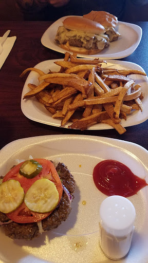 Sub par burger. Attempt of a gourmet style. Too greasy. I love greasy burgers, from a greasy burger place. If you are goin make a stuffed burger it better explode with flavor as i bite into it. This just kind of covered me in semi cooked bacon grease. Bacon was under cooked. Cheese was mostly grease. Bun slightly stale. Add some fries, good ones. Do fresh cut fries. Throw some toppings on them. Add some salt. Store bought fries just didnt cut it. Inside was poorly lit when i was there. The place needs a clear direction on where they are going. Either greasy spoon mom n pop or gourmet burger.