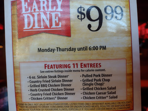 Food was not that good in general. Chicken critters were tough and bland. My wife couldnt eat them. We also felt very rushed because the waitress asked if we wanted desert or to go boxes just a few minutes after we got our food. I eat really fast and I wasnt even done with my burger. I left a note saying that was our first and last visit.
