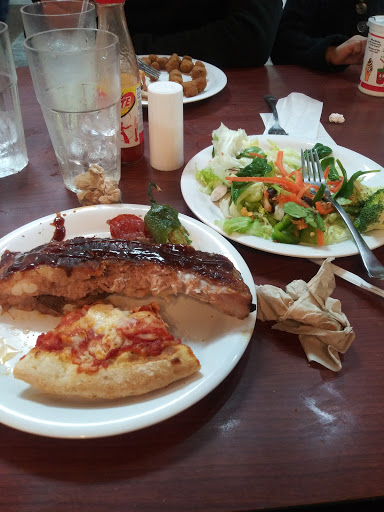 The first time we went to this restaurant we loved it, so we drove from Murfreesboro just to get highly disappointed the second time... its really sad when you think about it. The restaurant wasnt even crowed so that was not the issue. First off whoever they had cooking the steak was clueless they did not even know rear from well done not only that but he tried to give everyone child size cuts of steak. The salad bar was a mess it was never restocked most containers where empty and the bar itself was covered with old food which looks to have been washed off last week sometime. The waitress brought us a refill on drinks once after we were done eating, but the table across from us had like 3 refill cups per person and they got there 20 min after us The dessert bar was a joke there were actual finger prints pushed into the chocolate cake. The restrooms were discusting Im surprised that no one has broken their neck on those slippery floors. The sad part is everything was so bad the only thing our 1yr old daughter would eat was the peaches.