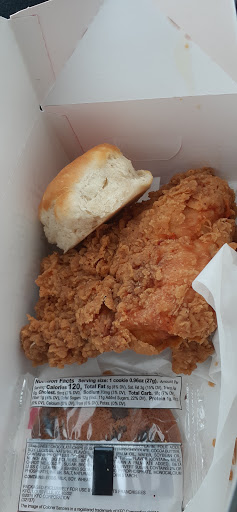 The outside of the chicken was hard and the inside was hard and dried out plus there were bands of gristle thru all my pieces. Terrible food. The employees were great. Im just passing thru but I wouldnt go back there just to chat