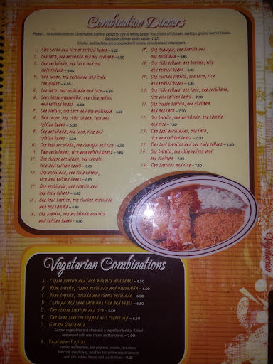 I am very dissatitsfied. I WILL NEVER EAT HERE AGAIN. It is NOT TRUE MEXICAN food. the watress did not keep us up on or drink. ONLY THING THAT WAS GOOD WAS THE CHIPS and CHEESE dip and the SALSA for the chips
