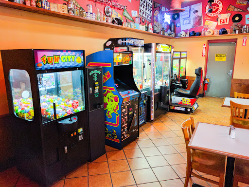 Fantastic theming. You walk in and you are thrust into a 60s style diner. Everything is coated in old records, and black-and-white photos of famous musicians like Elvis Presley. The food is great. The arcade is mainly claw machines and quarter machines, but theres also classics like Galaga and Mrs. Pac-Man. Theres also a bakery where you can buy cheap cookies and ice cream. Overall, its a great restaurant, and everyone should give it a try.