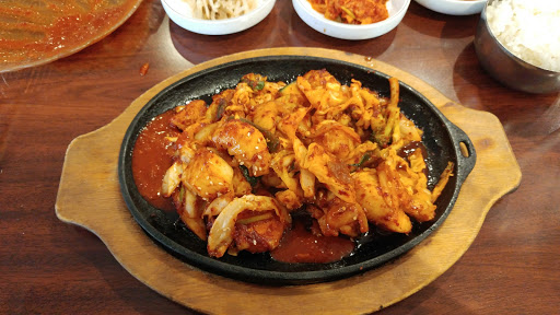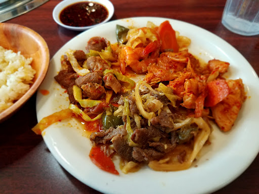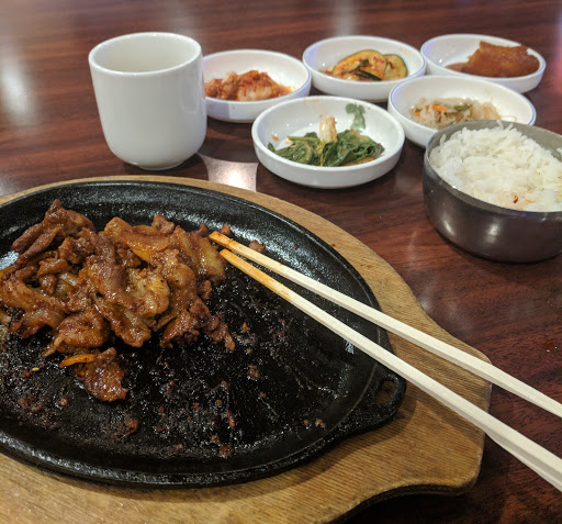 As I write this Im eating nummy leftover Bulgogi. My got the Chicken Teriyaki and was also pleased. We ordered the fried dumplings as an appetizer. They were super-crispy and quite tasty. There was an assortment of vegetable sides: lettuce with a lightly sweet / tart dressing, cucumber with the same dressing, but more cayenne pepper, bean sprouts, potato chunks stir fried in a sweet sauce, and of course, kim chee. Our entrees came out sizzling on skillets, similar to fajita style. The food was quite excellent, and the atmosphere felt very authentic (having never been to Korea, I cant say for sure :-). Together our meal was about $28 with tax ( not counting tip), so a good value for the experience.