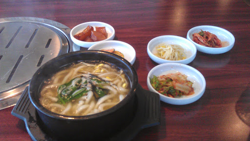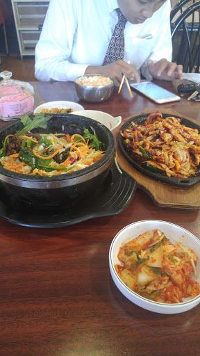Well, i just took my wife out for her birthday today, and she wanted to go to this Korean place..Ive had better service at Mc Donalds to be honest..The waitress was rude as hell, she walked away while my wife was ordering because she wasnt ordering fast enough to suit that rude broad..I wanted to leave , but my wife begged me to stay..Look when im spending 80.00 bucks on lunch i expect service with a smile, not this grouchy old bag..She is also the Cashier and table cleaner..She will bus a dirty table then get her hands on your food..In short i thought this place sucks..The food was ok,,overpriced for what it was though..Next time we will just go to Longhorn steak house..