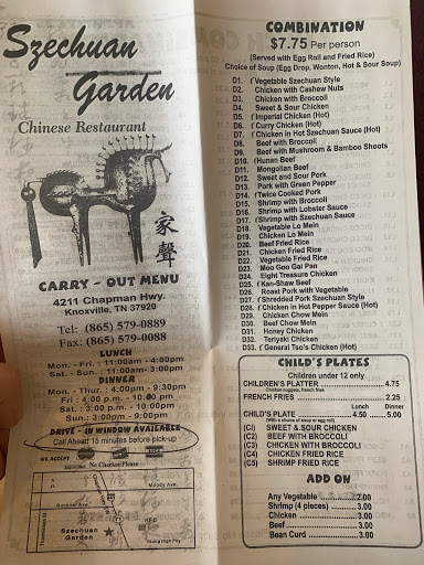 I am a Chinese food addict...I am a senior and have ate at many Chinese restaurants in my life. This is one of the best Ive ever eaten at. The food is always fresh and cooked perfect. They are very consistent with their portions. I have never had anything that I didnt like, some i like better but that was my taste. I live in Sevierville and wish they had a restaurant here. But to me the drive is worth it. Last but not least the prices are "VERY REASONABLE". I have eaten in about every Chinese restaurant in this area and I choose this one most of all. I do not like buffet style, to me this way of cooking Chinese food dose it no justice. Szechuan Garden...PLEASE DO NOT change your style of cooking.